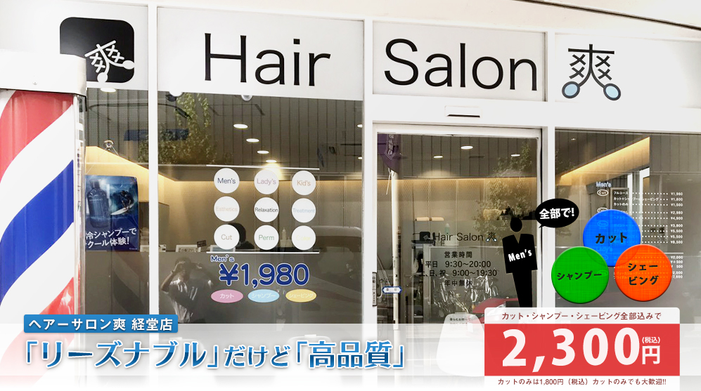 - 2016.08.02「ヘアーサロン爽」の営業時間に一部変更がありました。